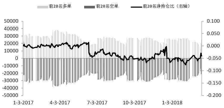 具体席位方面,伴随主力资金移仓,多空对峙局面在其余合约得到体现,各席位多空主力持仓均大增。多头方面,五矿经易、鲁证及乾坤期货等净多持仓排名靠前的席位上周多头均有不同程度增仓。其中,五矿经易期货多头持仓增加1600余手,净多持仓增至2503手。鲁证期货多头增仓623手,净多持仓增至1781手。空头方面,上海东证、国投安信、银河及中信期货等席位空头持仓持续回升。其中,上海东证期货空头增仓近800手,净空持仓1703手升至第一。同时,中信期货空头增仓493手,净持仓由净多93手翻空至净空448手。