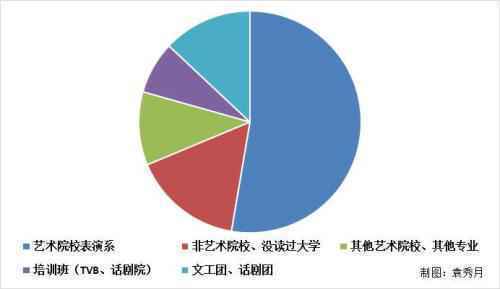 而在电视剧领域,差距则拉大了。在76位演员中,共有49位是科班毕业,没读过艺术院校的只有7位。文工团、话剧团的反而较多,有12位。其他艺校和其他专业的有6位,培训班的只有两位。