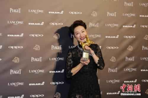 资料图:惠英红凭借电影《血观音》获得第54届金马奖最佳女主角奖。中新社记者 杨程晨 摄