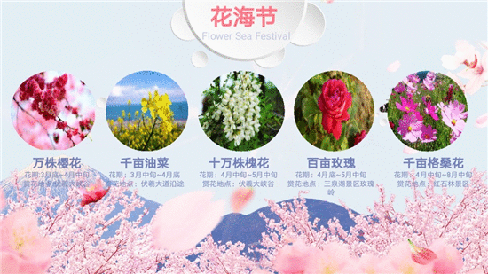 万株樱花:3月底—4月中旬,赏花地点:伏羲大峡谷;