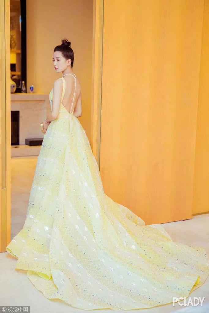 身着鹅黄色露背曳地礼服搭配NIRAVMODI珠宝的刘诗诗,大露背的礼服搭配长珍珠链,突出背部线条,气质温柔,散发女人味。