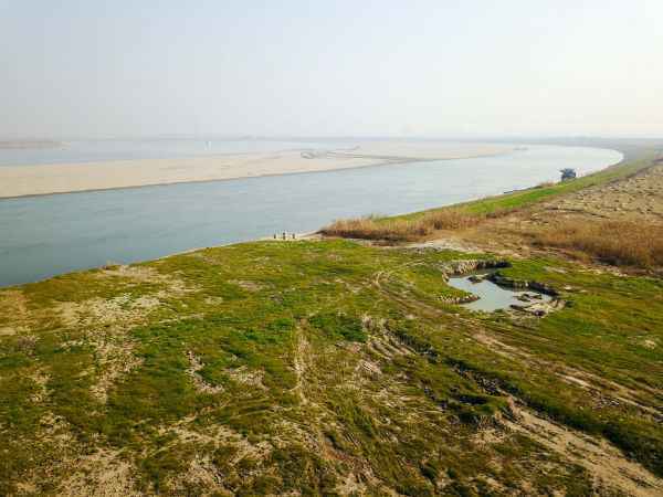 资料图:湖南省岳阳市君山区长江沿岸拍摄的整治复绿后的华龙混凝土砂石码头。