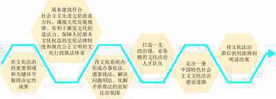 我国文化法治建设经历了从无到有、从粗到细、从分散到体系的发展过程,党的十九大报告指出,中国特色社会主义法治体系日益完善,全社会法治观念明显增强。