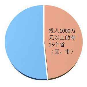 2015年,全国省级财政专项资金投入38719万元(含新疆生产建设兵团),省级财政平均投入1210万元(含新疆生产建设兵团)。2015年省级财政专项资金投入1000万元以上的有15个省(区、市)。