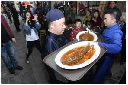 根据“安仁食单”,春季食物应遵循“辛甘助阳”之道,扬“乡饮酒礼”之风。因此春分长街宴主菜为“鱼宴”,特邀请河南阿五餐饮集团黄河大鲤鱼创始人樊胜武、成都田园印象餐饮机构创始人熊阿兵联袂主理号称食物届“白色黄金”的黄河大鲤鱼。到场食客大快朵颐,连连称赞安仁美食的可口味道。