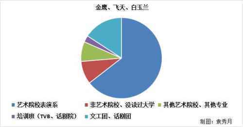 金鸡奖、金像奖、金马奖、金鹰奖、飞天奖、白玉兰奖过去十届获奖演员教育经历统计,除去不明以及重复的,共计入131位