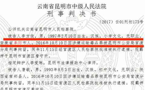 李方俊此后在中国裁判文书网查到了一则《李方俊、唐敏运输毒品一审刑事判决书》,这份判决书显示:李方俊于2016年10月10日因涉嫌运输毒品罪被昆明市公安局官渡分局刑事拘留,并被判处有期徒刑11年。
