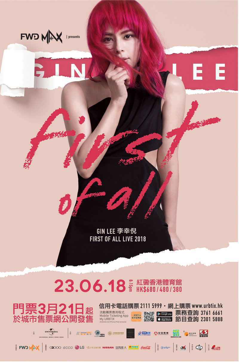 Gin Lee (李幸倪) 自从加入环球唱片后,先后推出唱片《beGin》以及《Live In The Moment》,分别获得白金唱片及金唱片销量认证;及后亦凭多首冠军作品横扫多个奖项,包括连续两届勇夺「叱咤乐坛女歌手银奬」等等,各方面均获佳绩!昨天(20/3),唱片公司隆重宣布好消息,Gin Lee终于迎来人生首个红馆演唱会,并于今年六月举行《FWD MAX presents Gin Lee 李幸倪 First Of All Live》,一圆多年梦想!