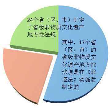 已有24个省(区、市)制定了省级非物质文化遗产地方性法规,其中,17个省(区、市)的省级非物质文化遗产地方性法规是在非遗法实施后制定的。
