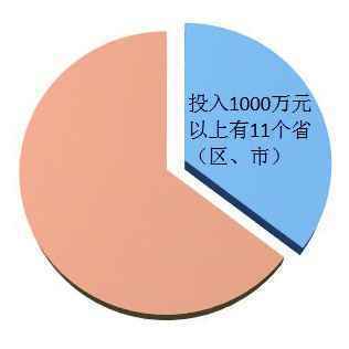 2015年,全国省级财政专项资金投入38719万元(含新疆生产建设兵团),省级财政平均投入1210万元(含新疆生产建设兵团)。2015年省级财政专项资金投入1000万元以上的有15个省(区、市)。