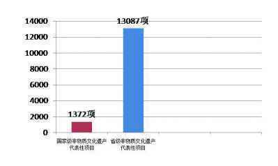 截至2016年,已公布国家级非物质文化遗产代表性项目1372项(不含子项),省级非物质文化遗产代表性项目13087项。